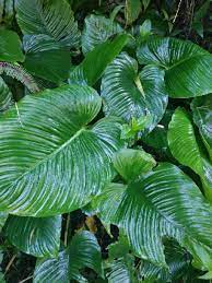 Daun besar, berbentuk hati, atau sagittate tumbuh hingga panjang 20 hingga 90 cm (8 hingga 35 inci) pada tangkai daun yang panjang. Bunga ara mereka tumbuh di ujung tangkai pendek, tetapi tidak mencolok; sering tersembunyi di balik tangkai daun.